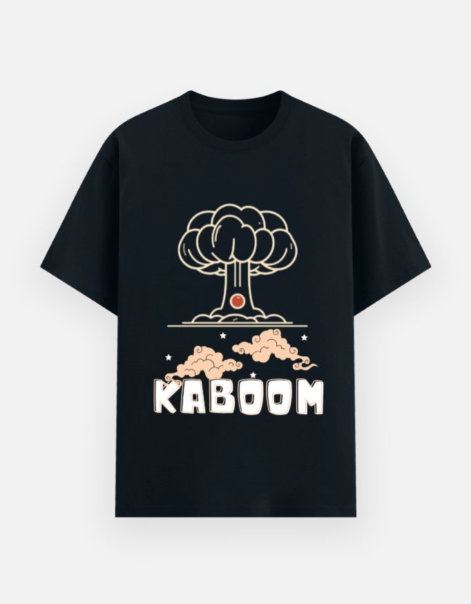 This KABOOM tee from Chaarbaak is a provocative piece of wearable art designed to make a statement. By utilizing a high-contrast, stylized atom bomb mushroom cloud, the design serves as a powerful anti-war critique. The minimalist line work and bold typography strip away the noise to focus on the gravity of the subject, transforming a symbol of destruction into a call for reflection.
