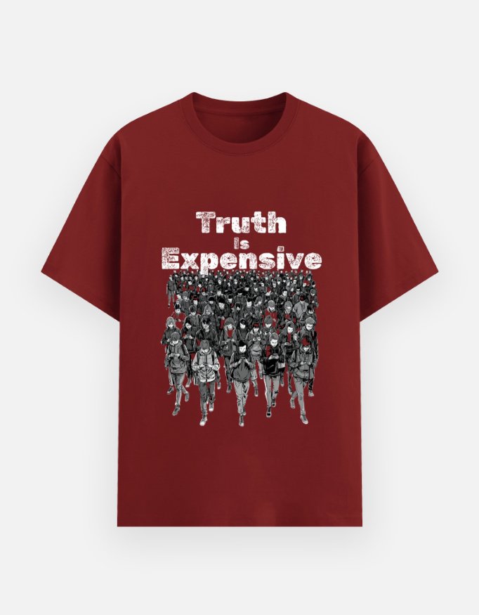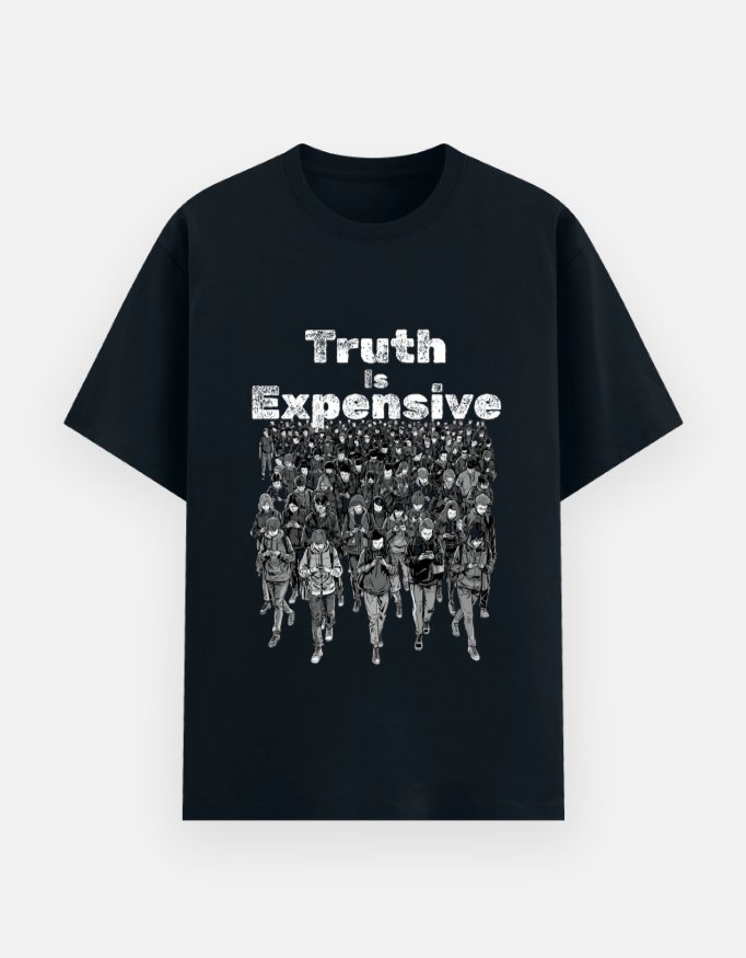 In a world full of free lies, the truth is the most expensive thing you can own. Our “Truth Is Expensive” tee is a stark visual commentary on the weight of integrity. Featuring a dense, monochrome crowd of figures moving in unison, it highlights the courage it takes to break the mold and seek a perspective that isn’t pre-packaged.